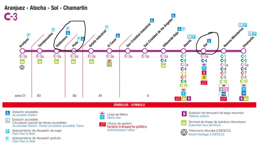 Line C3 in the opposite direction, reaches the beautiful town of Aranjuez.